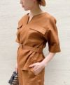 3位【PARIGOT(パリゴ)】 半袖ウエストベルトリネンブラウス
