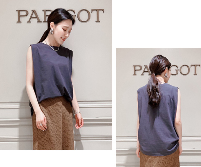 こういったシンプルなノースリーブカットソー、とっても使えますよね。