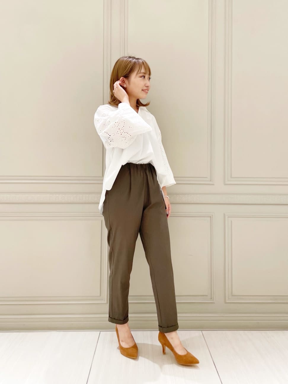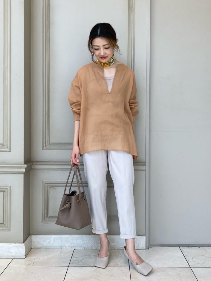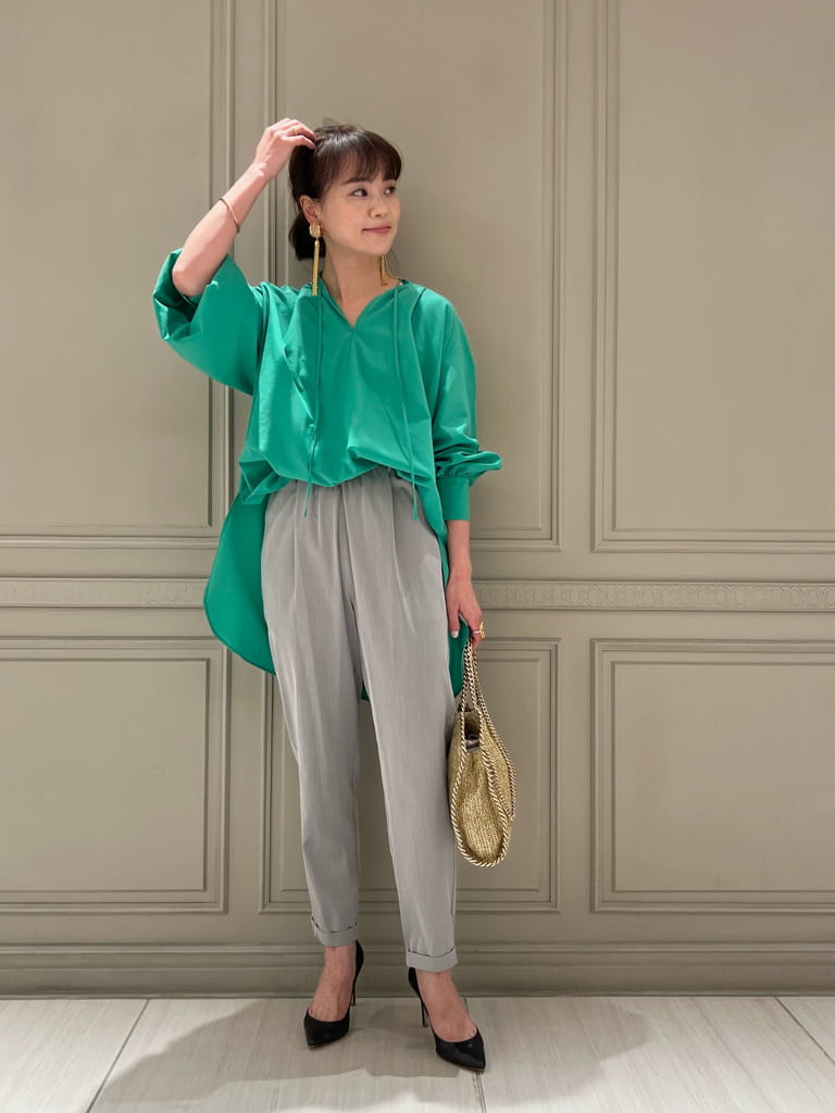 素材感 : 程よいハリ感と落ち感がありサラリとした素材。おうちでお洗濯できるのも嬉しいポイントです◎