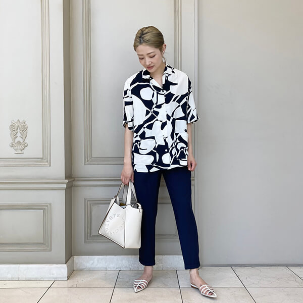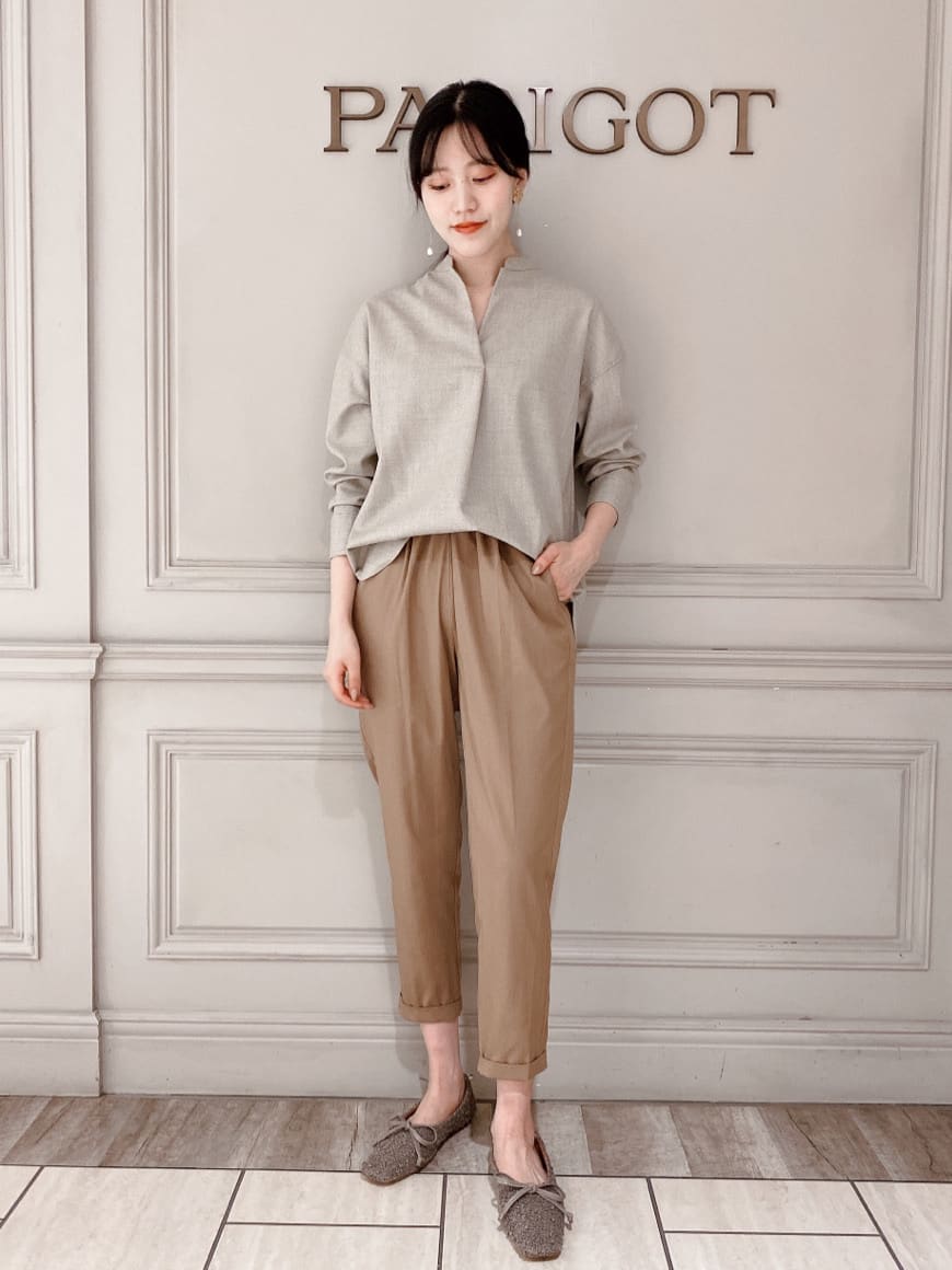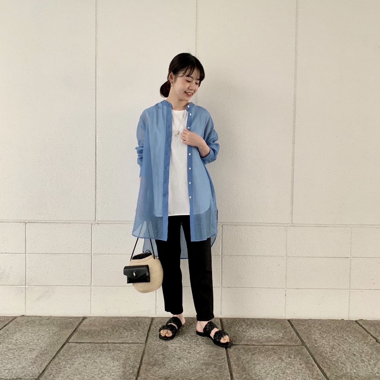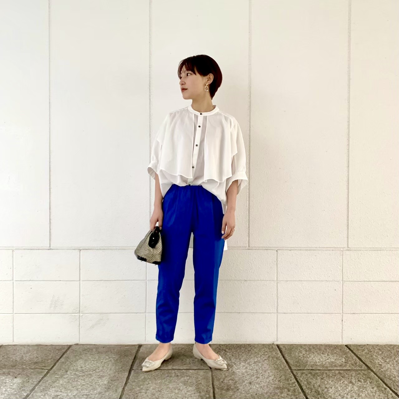 素材感 : 程よいハリ感と落ち感がありサラリとした素材。おうちでお洗濯できるのも嬉しいポイントです◎