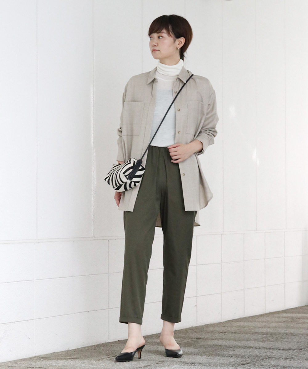 少し足首が見える着丈で、スタイリングにちょうどよい抜け感が生まれてオシャレです。