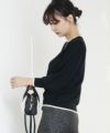 配色ラインが控えめながらも程よいアクセントになったPARIGOT(パリゴ)のクルーネック配色ニット。