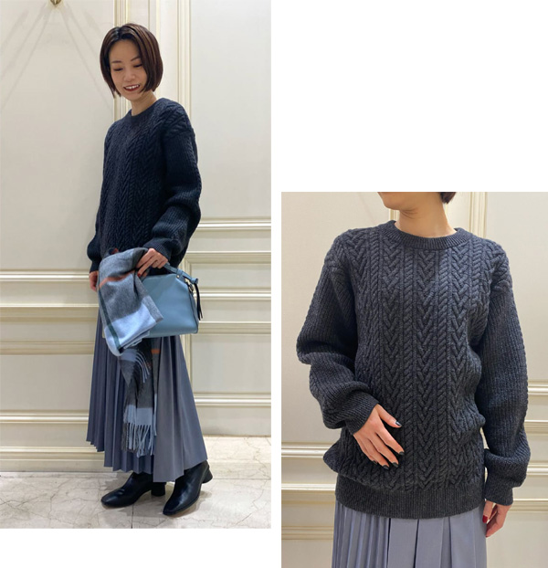 PARIGOT(パリゴ)のメリノウールケーブルニットは、バックスタイルのシルエットにもこだわっています♪