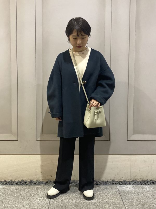 首元もすっきりしているので女性らしく見え、インナーのオフホワイトが映えますね♪
