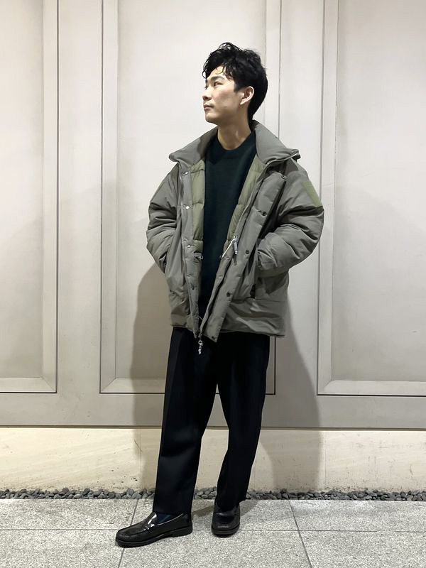 ニットの深いグリーンとダウンのお色味が相性バッチリです♪