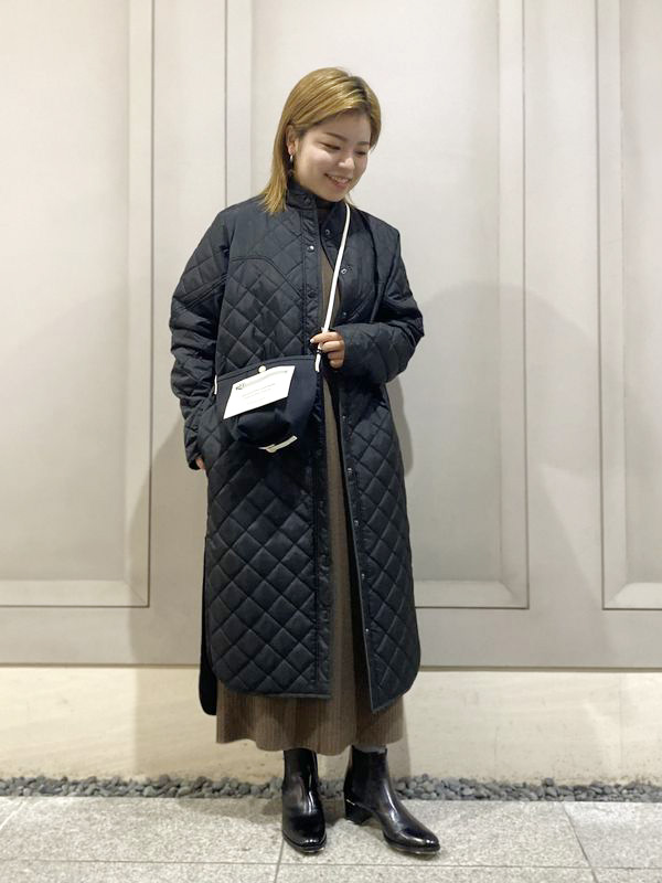designersremixのキルティングコートは、スッキリとしたIラインシルエット。