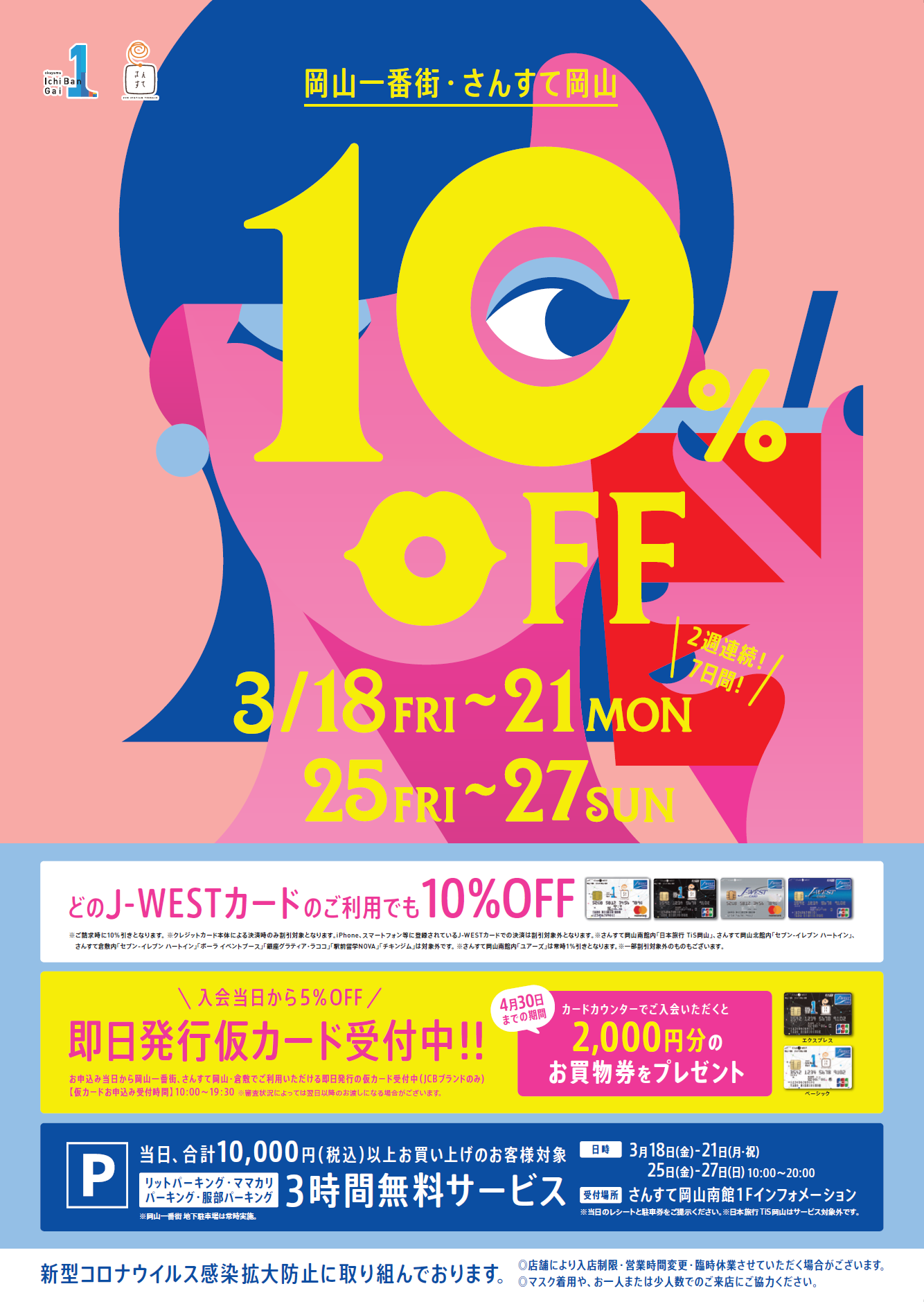3月18日(金)〜21日(月・祝)・25日(金)~27日(日)の期間、PARIGOT岡山店にて10%OFFイベントを開催いたします!
