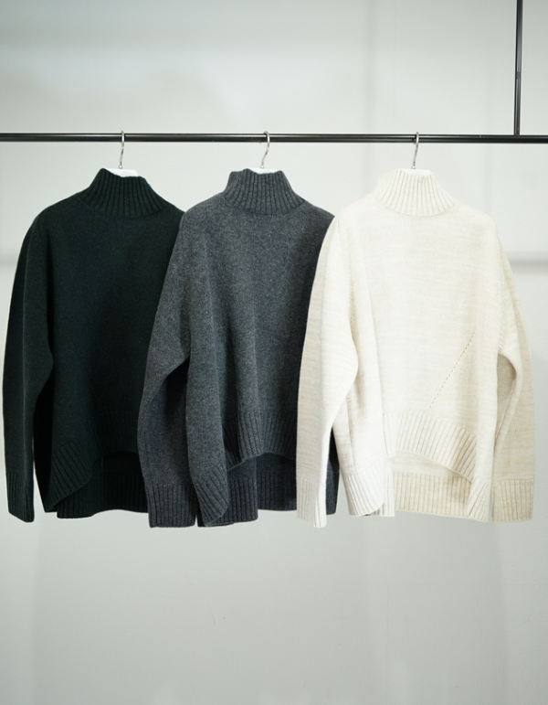 毎年人気のMGのハイネックニットに、深緑を思わせるグリーンが加わりました。