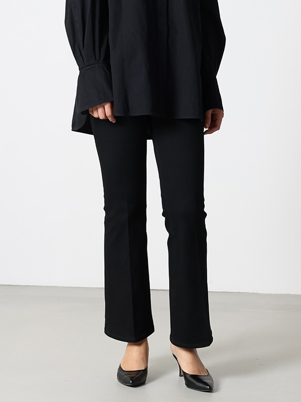Mame Kurogouchi(マメ クロゴウチ)らしい身体のラインに沿うようなカーブの入ったスリムデニムパンツ。センタープレスが入り、足元をスッキリと演出し、よりアクティブな印象に。ポケット部分にもカーブを入れることでより一層女性らしいシルエットのパンツに仕上がりました。エレガントなスタイルからカジュアルなスタイルまで、幅広いスタイルで活躍します。