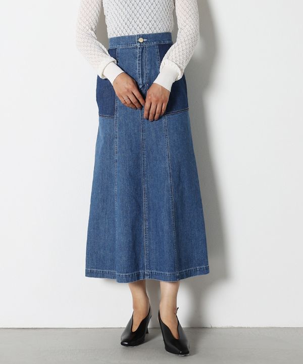 スパンコールを小花に見立て刺繍を施したジャージースカート。小花に見立てたスパンコール刺繍がカジュアルさの中に繊細な気品を与えてくれます。ヒップ部分はタイトで裾に向かってフレアするシルエットはカジュアルになりすぎず、女性らしい遊び心のある1着に仕上がっています。
