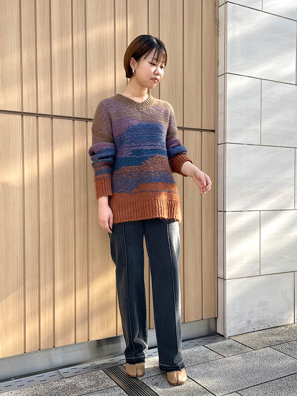 シンプルなボトムスでも一枚で充分存在感もあり周りから褒められること間違いなしの一枚です。