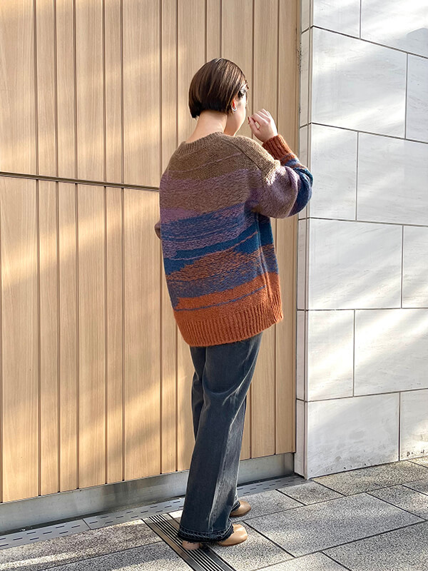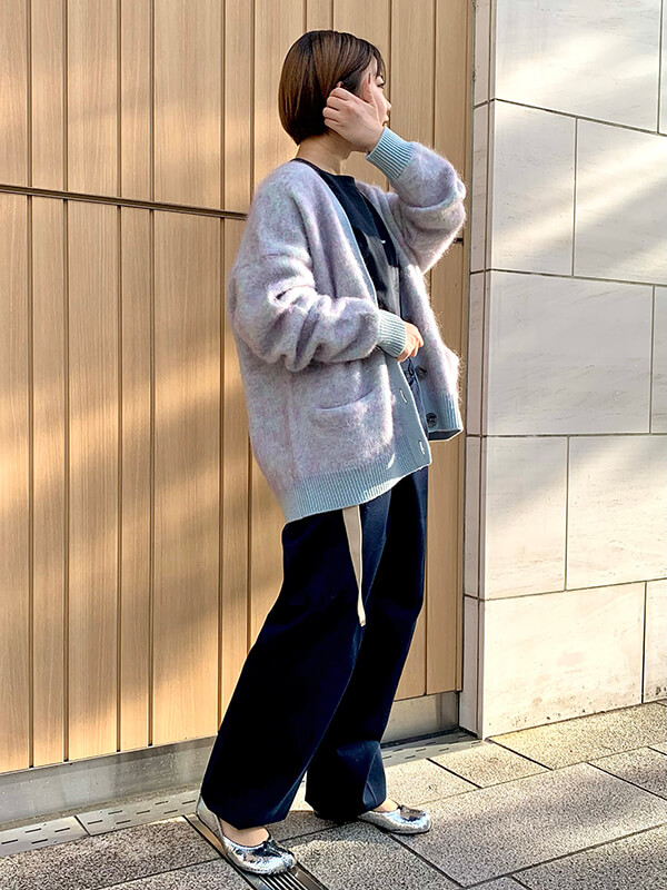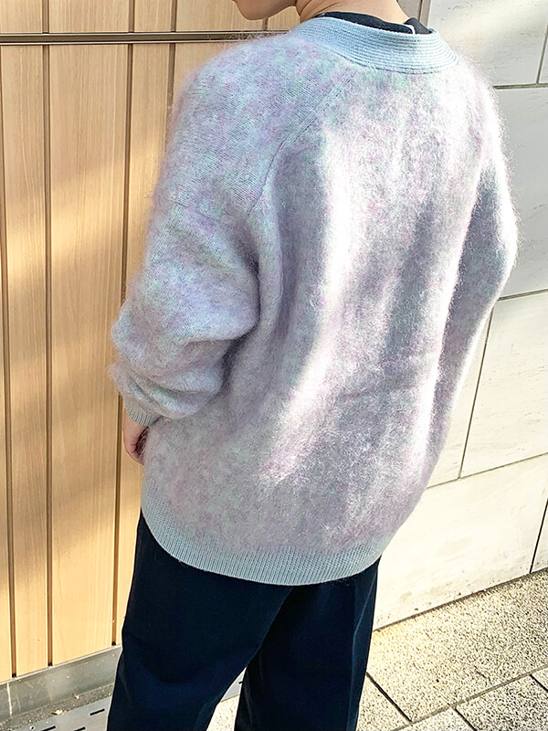 モヘアとウールのブレンド素材で柔らかな着心地と、ゆったりしたシルエットがリラックス感のある一枚です。