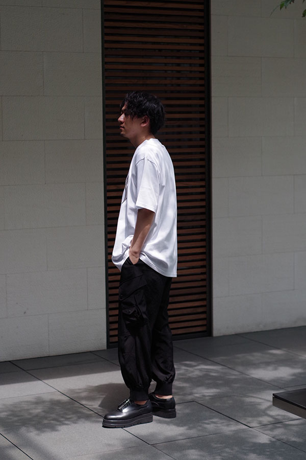 こちらはオーバーサイズのTシャツです。今の季節でも着られる半袖のカットソーで、生地は少し地厚になっております。