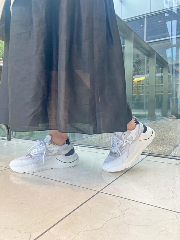 秋冬に引き続き、足元にボリュームを持たせたい今の気分にピッタリな程よい存在感がポイント。ダッドスニーカーにありがちな足だけ大きい!にならないシュッとしたシルエットがご機嫌ポイントです!