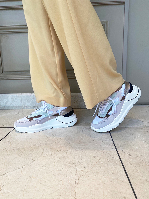 スニーカーを履きなれていない大人女子にもグッとくる配色や異素材使いがさすがイタリアメイド。普段の洋服に自然と馴染みます。