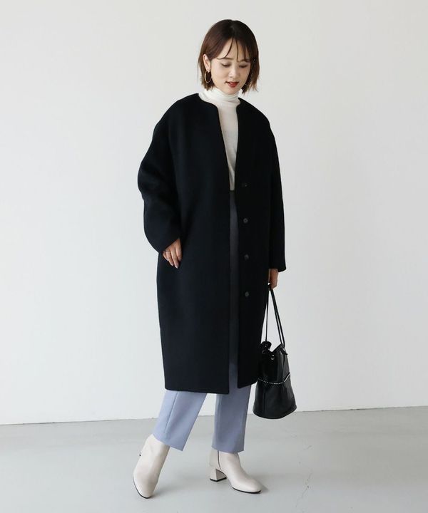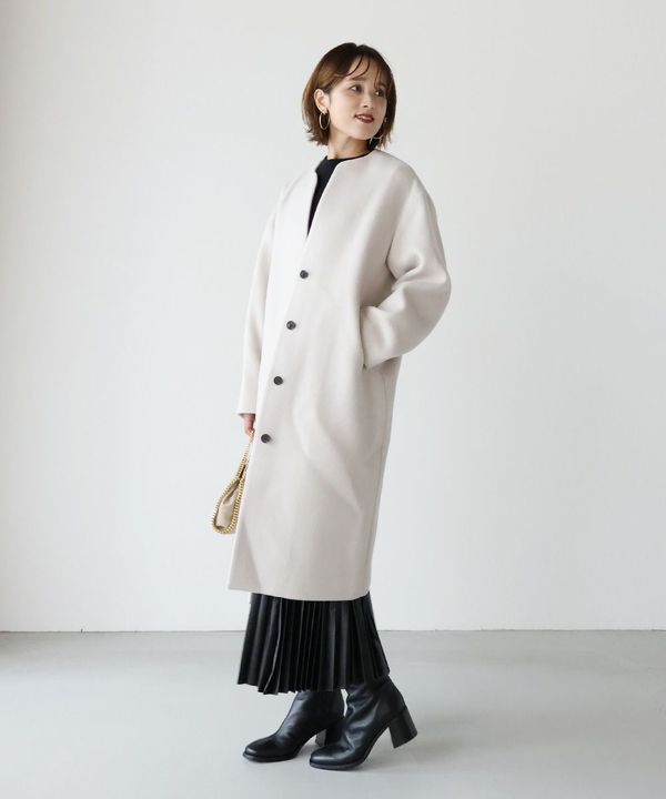 上質な日本製ウール素材”PECOLAMB BEAVER S110″を使用したキーネックコートです。
