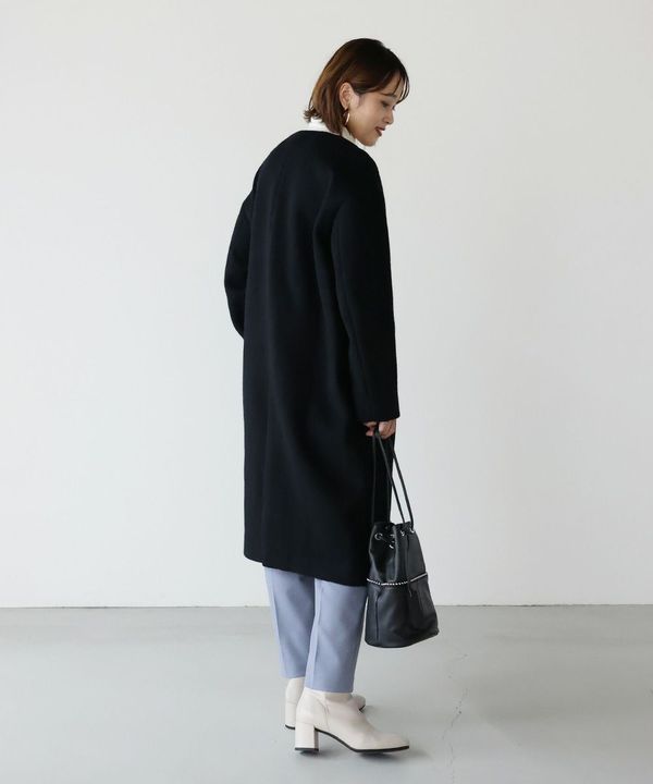 丸みを帯びたコクーンシルエットとソフトな素材の風合いが、BLACKでも重たくなりすぎず柔らかな印象を与えてくれます。