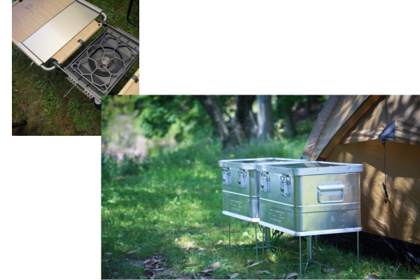 その日のサイトの環境からファニチャーの配置などを考えます。これが結構楽しいんです。