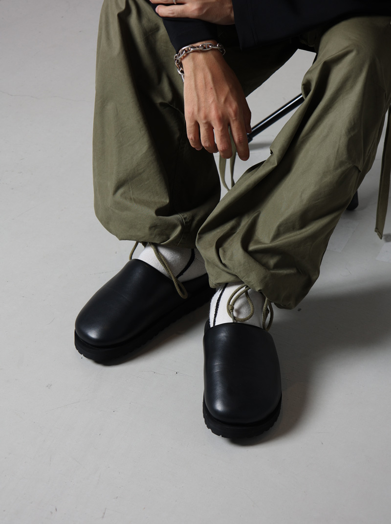 足元にはN.Hoolywood(エヌハリウッド)のスリッパをチョイス。