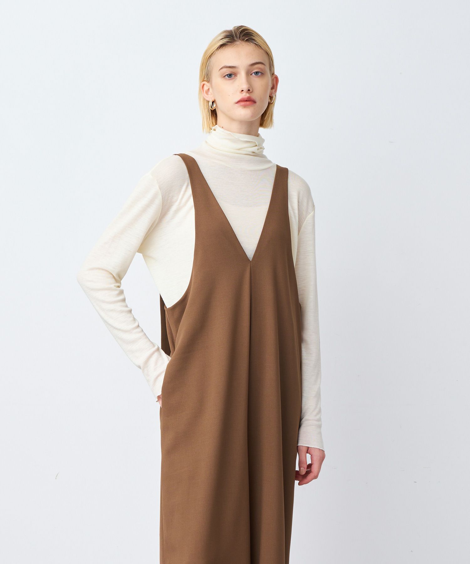 ストレスフリーなシルエットで、ゆったりとした袖周りのためボリュームトップスを合わせても好相性。