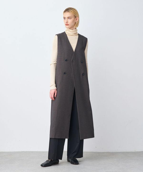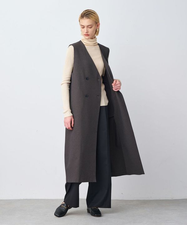 また、カシミヤのようなタッチで、柔らかく美しい光沢が特徴のロイヤルジーロンメルトン素材を使用。コートながらも美しいドレープ感が生まれ、エレガントな雰囲気を漂わせます。