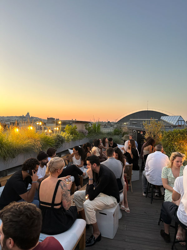 屋上のテラスは満席で賑わっています。