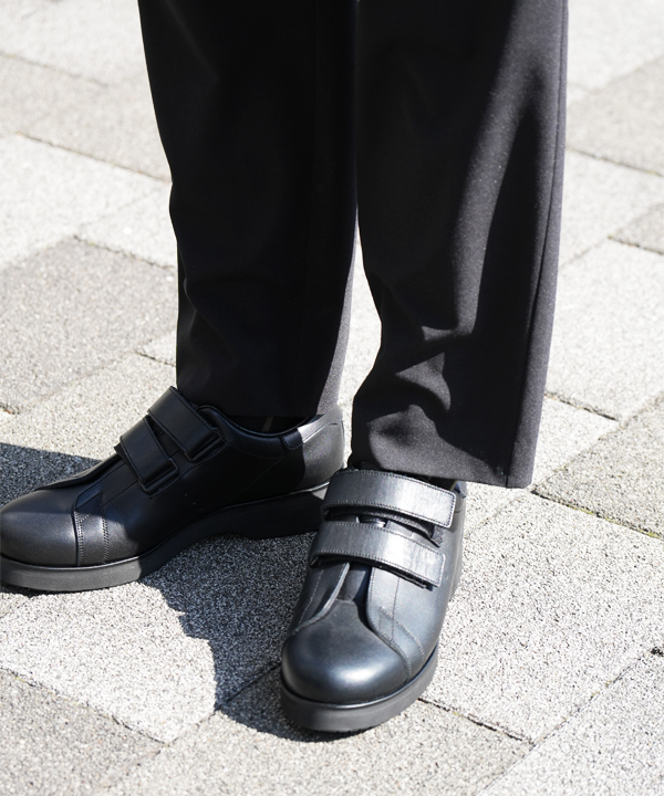 デザインがシンプルだからこそ、トップスと靴にポイントを置いた着こなしが叶います。