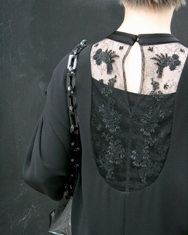 オケージョンなど特別なお出かけにぴったりなMame Kurogouchi(マメ クロゴウチ)からバックスタイルが印象的なドレスが登場しました。