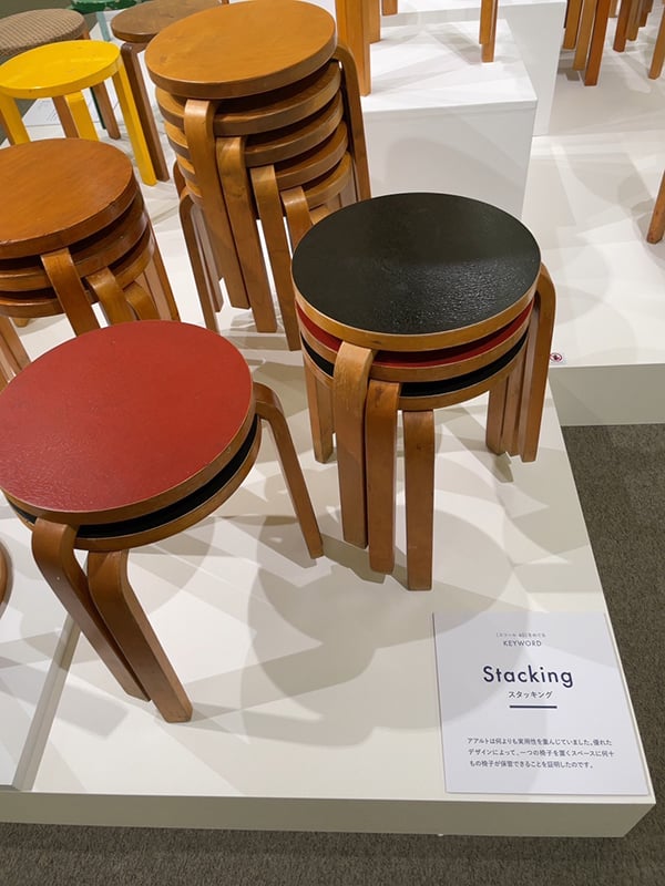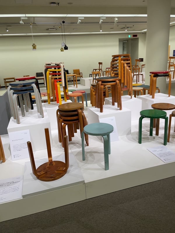 この大量の椅子はなんなのかというと、建築家・デザイナーとして活躍し、その偉大な功績から「北欧モダンデザインの父」と呼ばれる「アルヴァ・アアルト」の作品です。