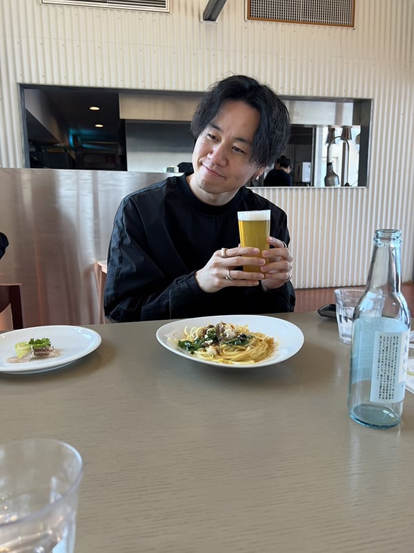 その土地ならではのクラフトビールを嗜むまつばらの姿をパシャリ。