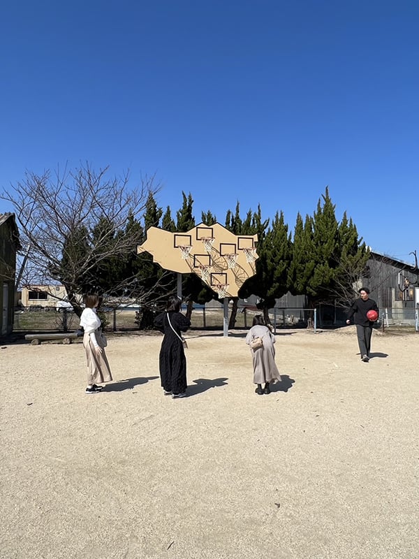 そして少し車で移動して、またまた豊島の観光名所であるゴールがたくさんついたバスケットゴールがある公園へ行きました!