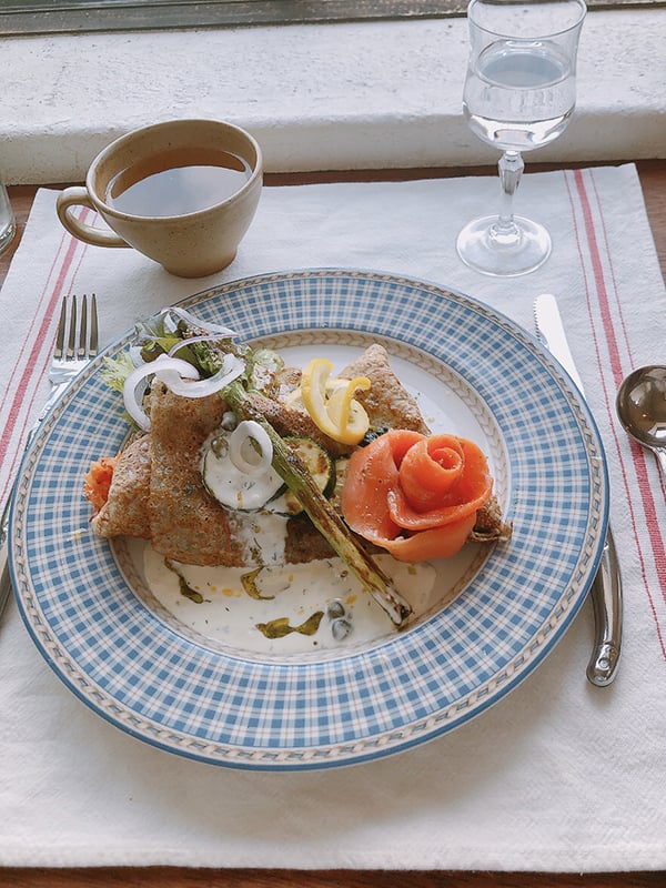 今回選んだのは「サーモンのガレット」と「ジャガイモの冷製スープ」。