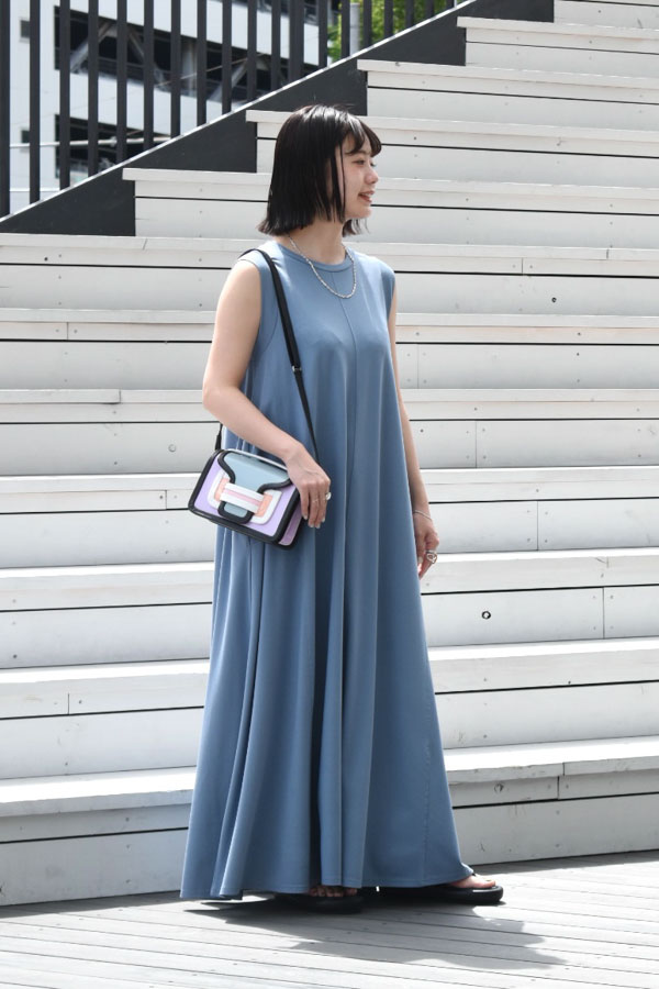 少々重めのデザインのこちらは、夏は涼しげにノースリーブと組み合わせるのがおすすめ!