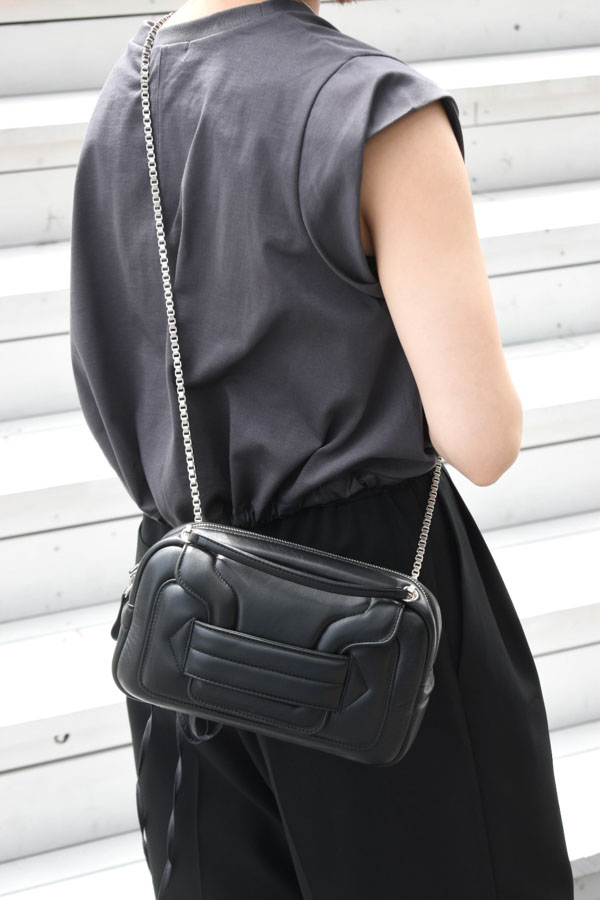 シンプルな色ですが、ぷっくりとした質感のシルエットとチェーンのかっこよさがベストマッチなこちらのバック。