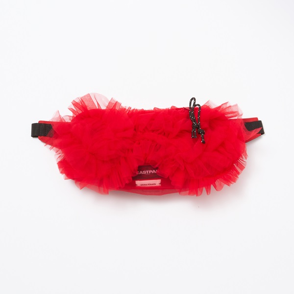 第二弾となるコラボレーションアイテムは、イーストパックの定番の人気モデルに、チカキサダを象徴するチュールをあしらった全2型のバッグが登場。