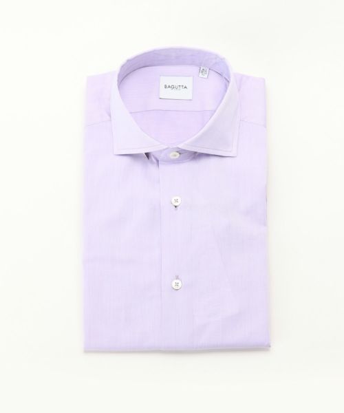全体の印象としては、ごくシンプルでクラシックな合わせですが、ポイントはシャツとタイの色を今年トレンドのパープルで合わせたことです。