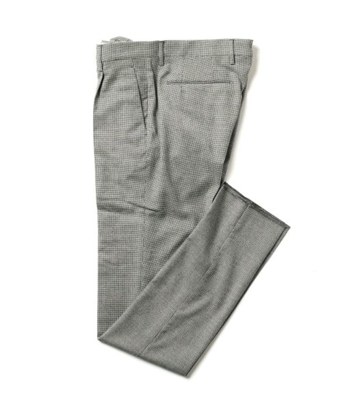 こちらもコーディネート自体はホワイトシャツに、ブラック×グレー×ホワイトのレジメンタルタイにグレースラックスというオーソドックスなアイテムをチョイスしています。