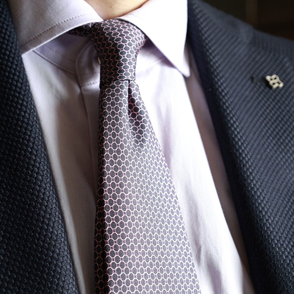 ネイビージャケットにはホワイトシャツにネイビーレジメンタルタイやサックスブルーシャツに同じくネイビー系のネクタイを合わせる方が多いと思いますが、Vゾーンなら変化を加えやすい場所なので、今年らしさや自分らしさを表現して頂けたらと思います。