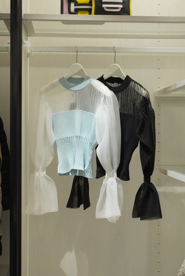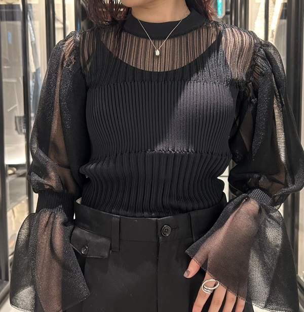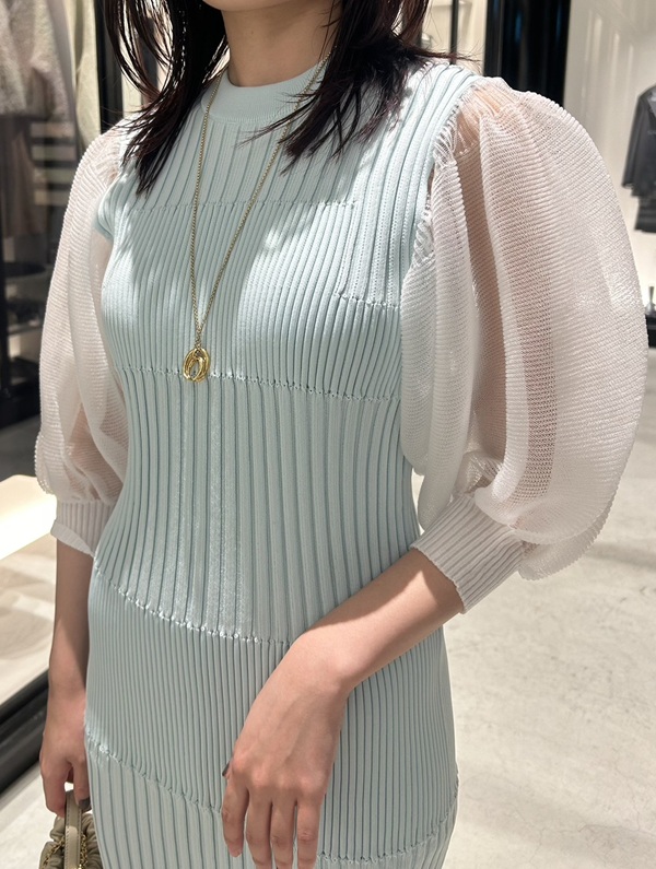 袖元のシアー素材の透け感が、上品さを演出してくれます。