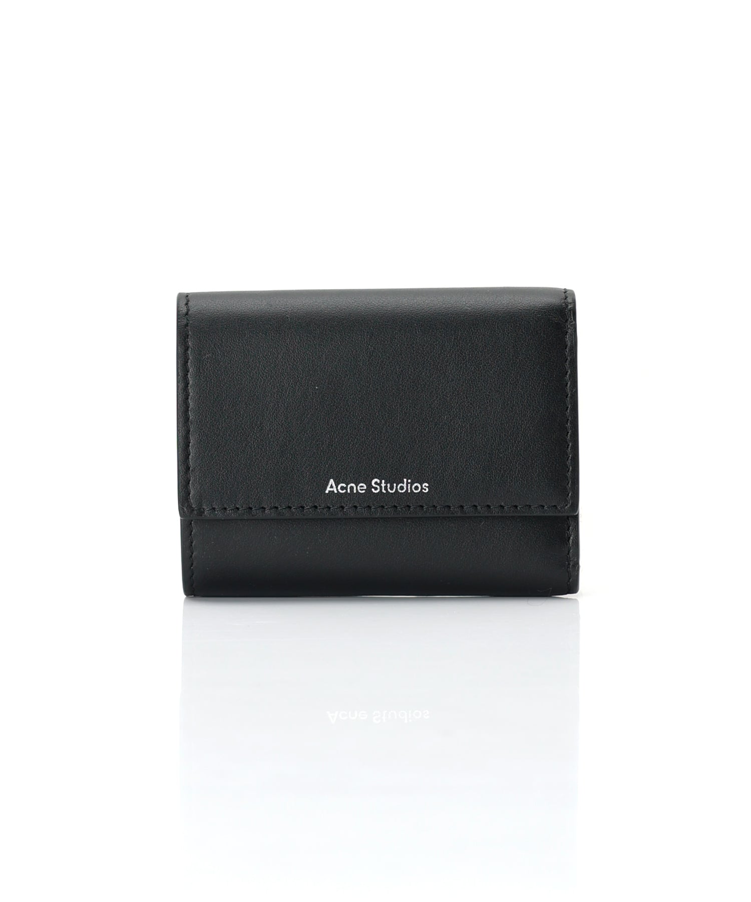フォールドウォレット ■ ¥58,300(税込) 3つ折りカードウォレット。ブラックのスムースレザーを使用。Acne Studios(アクネストゥディオズ)ロゴがポイント。カードスロットとスナップボタン付きコインポケットを備えたデザイン。 (商品番号:CG0221) |