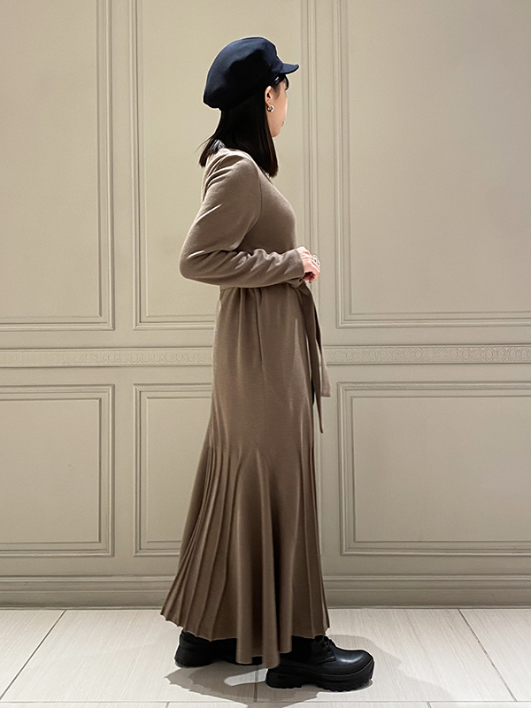 メリハリを利かせた編地の切替と肩の肌見せが女性らしさを高めてくれ、フェミニン且つモードな印象にしてくれます!
