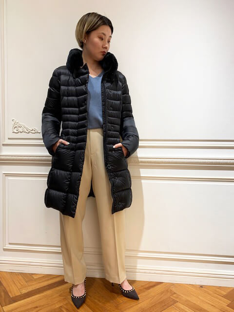 AYSEN LAPINを使ってコーディネートしてみました!エレガントな雰囲気のダウンに合わせてきれいめに。