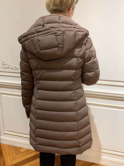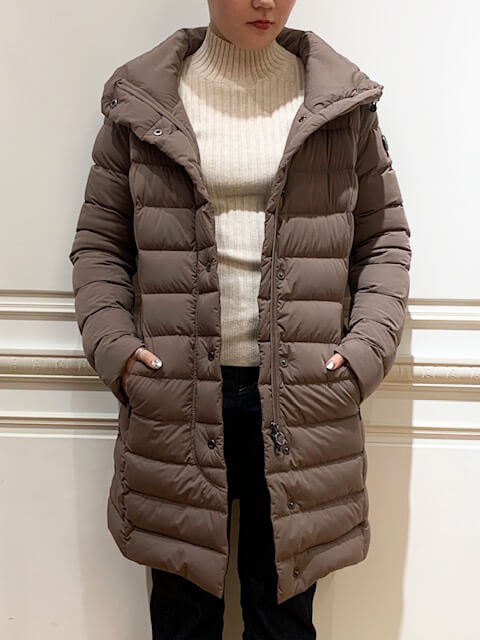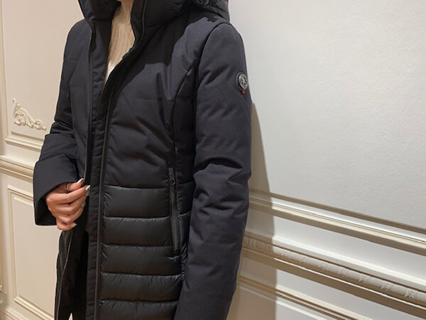ケープホーンの中でも一番ウエストシェイプされたシルエットです。異素材の切り替えで視覚的にもスッキリ見えます。ダウンなのに着やせ効果も期待できます。