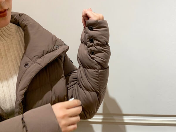 お袖にはスナップボタンが付いており、開けて折り返せばすっきり丈に。小柄な方でも着やすいロングダウンです。