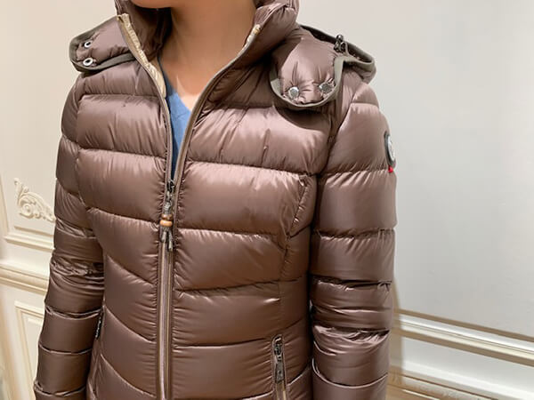 ジップにはビーズがあしらわれており、細かいところまでこだわりの詰まったファッション性の高いダウンです。