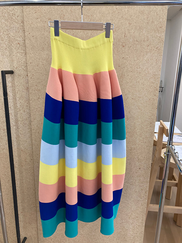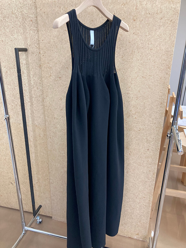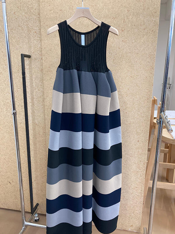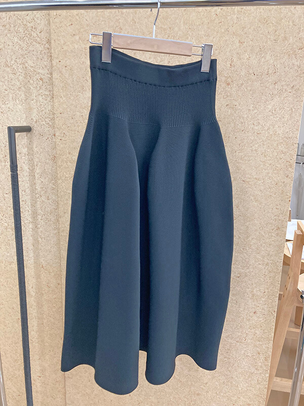 3Dコンピューター・プログラミング・ニッティングの技術を使い制作するため、布帛のように裁断による端切れをほとんど出なくし、タイムレスな服を提案しています。
