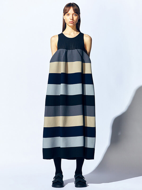 POTTERYシリーズを代表とするノースリーブフレアドレス。インナーを着て、重ね着もできるワンピースはシーズンレスで着用できるのが嬉しい。