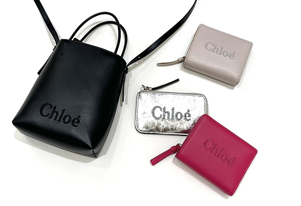 高級感のある光沢なグレインドレザーにクロエのロゴ刺繍を施し、質感のコントラストを表現されています。