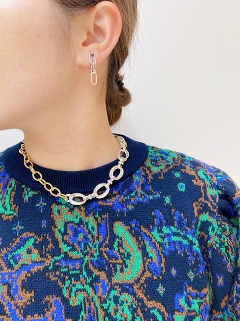 チェーンの大きさが異なり、ゴールドとシルバーをミックスさせたカラー使いでおしゃれさと華やかさが魅力です。