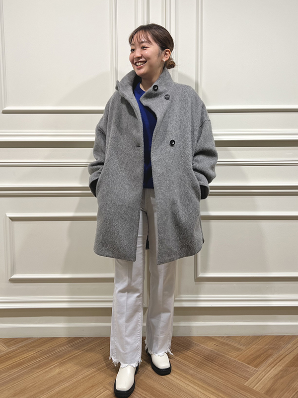 カジュアルな印象のコーデュロイですが、細かい畝感なので、キレイめなコートと合わせてスタイリッシュに仕上げたスタイリングにもオススメです!